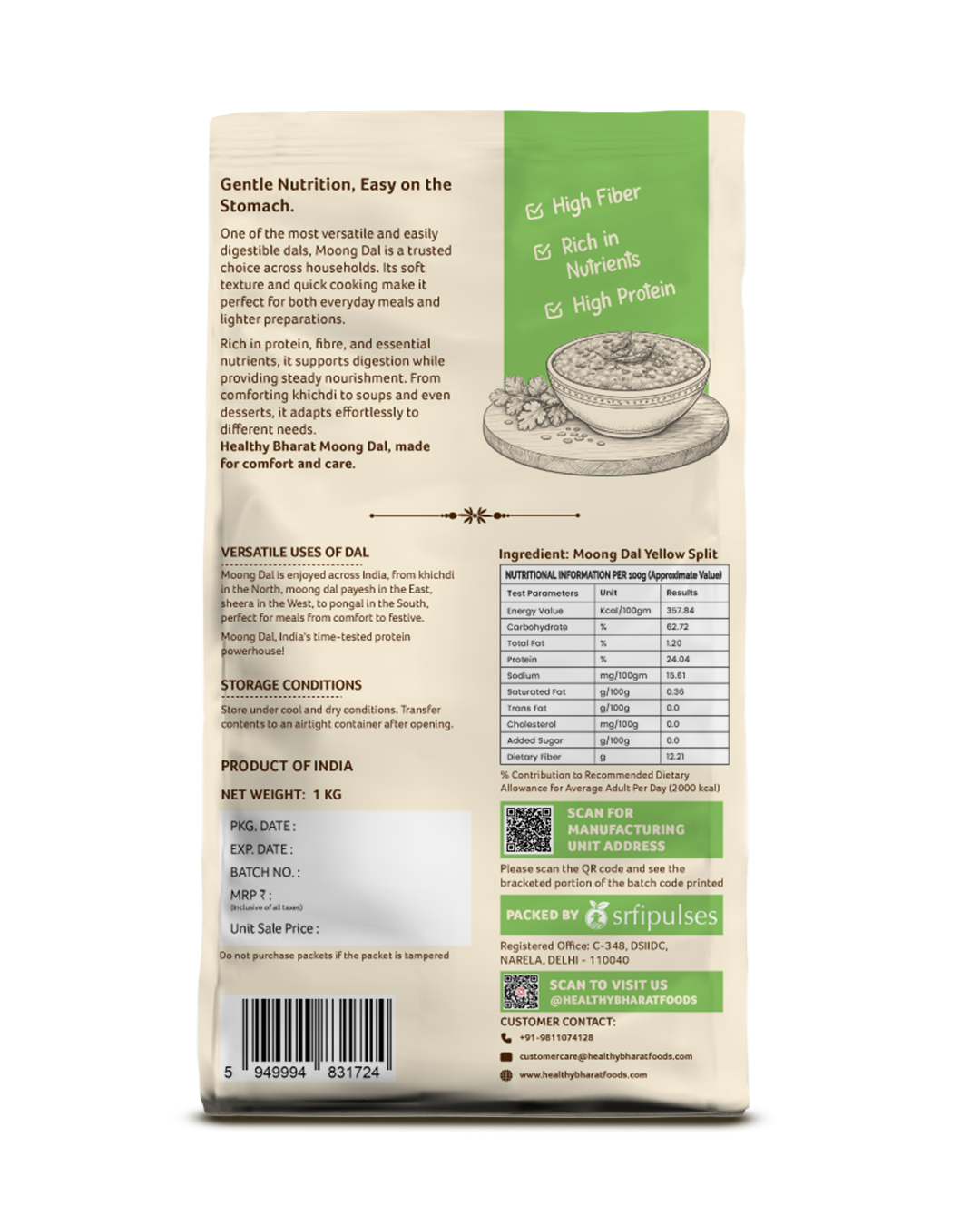 One of the most versatile and easily digestible dals, Moong Dal is a trusted choice across households. Its soft texture and quick cooking make it perfect for both everyday meals and lighter preparations.